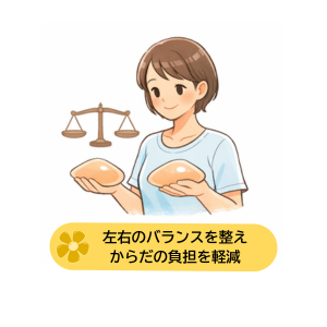 傷あとへの衝撃をやわらげ、左右のバランスを整えながら、 自然なシルエットへ導きます。