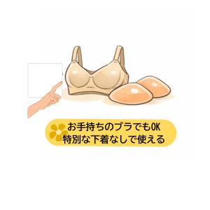 特別なブラジャーだけでなく、お手持ちのブラジャーでも使いやすいのが特長です。